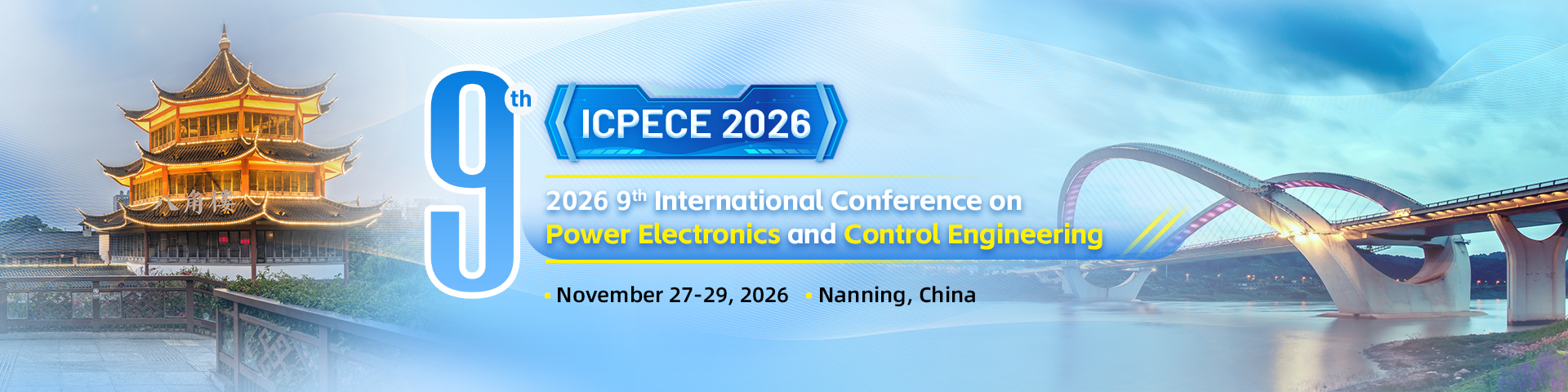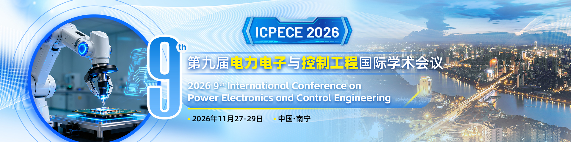 The 9th International Conference on Power Electronics and Control Engineering (ICPECE 2026) will be held in Nanning from November 27 to 29, 2026. As an international academic exchange platform with important influence in the field of power electronics and control engineering, ICPECE 2026 aims to bring together top experts, scholars and industry elites from universities, scientific research institutions and enterprises around the world to share cutting-edge research results and innovative technologies and promote the deep integration of academia and industry.